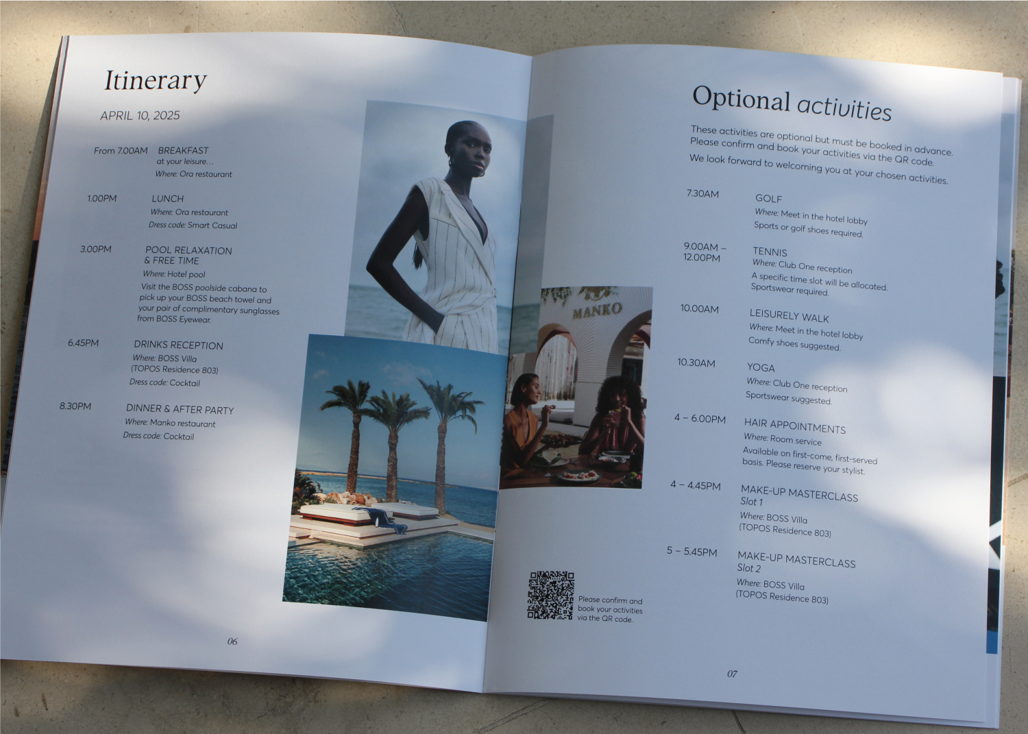 the elegant and airy silhouettes of the summer tailoring collection by BOSS. Guests were provided with the brochure upon arrival as an introduction to the resort and the experiences available over the weekend. A successfully curated event for all.
